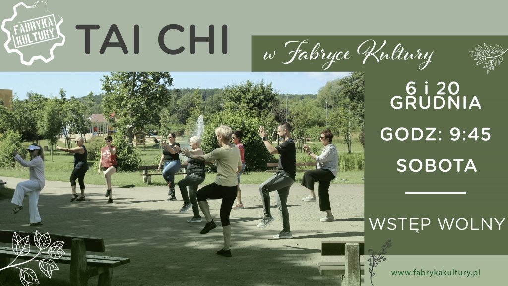 Zbliżają się darmowe zajęcia Tai Chi 🌸🌸🌸 29 listopada, 9:45 - 10:45 w Fabryce Kultury Od lat współpracujemy z niezastąpioną Małgorzatą Cudziło, dyplomowaną instruktorką Tai Chi i fitnessu, która dostosowuje ćwiczenia do Twojego poziomu i pokazuje Ci jak wyćwiczyć w sobie spokój, płynność i uwagę🧘♀️ Dołącz do grupy FB Tai
