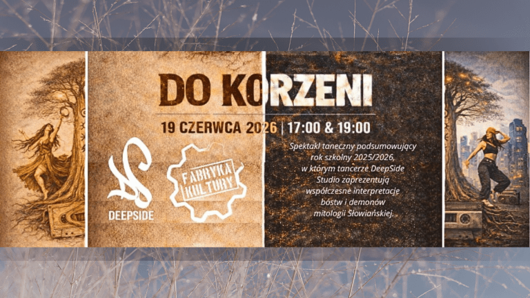 Zapraszamy na wyjątkowy Spektakl „Do korzeni” w wykonaniu uczniów DeepSide Studio – Szkoły Tańca i Kultury Hip-Hopowej w Redzie! To artystyczne podsumowanie roku tanecznego 2025/2026.Na scenie zobaczycie współczesne interpretacje bóstw…