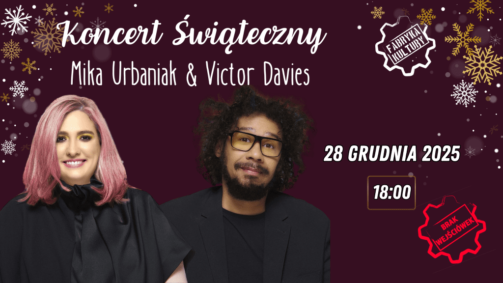 🎄 Koncert świąteczny - Mika Urbaniak & Victor Davies 🎄 🔻𝟮𝟴 𝗴𝗿𝘂𝗱𝗻𝗶𝗮, 18:00 🔻𝗗𝗮𝗿𝗺𝗼𝘄𝗲 wejściówki do odebrania w recepcji Fabryki Kultury 🏛️ 𝗠𝗶𝗸𝗮 𝗨𝗿𝗯𝗮𝗻𝗶𝗮𝗸 (Mika Urbaniak) – z muzyką profesjonalnie związana od wieku 13 lat, wychowywana przez legendarne ikony jazzu Urszulę Dudziak i Michała Urbaniaka, podbija serca miłośników różnorodnych gatunków