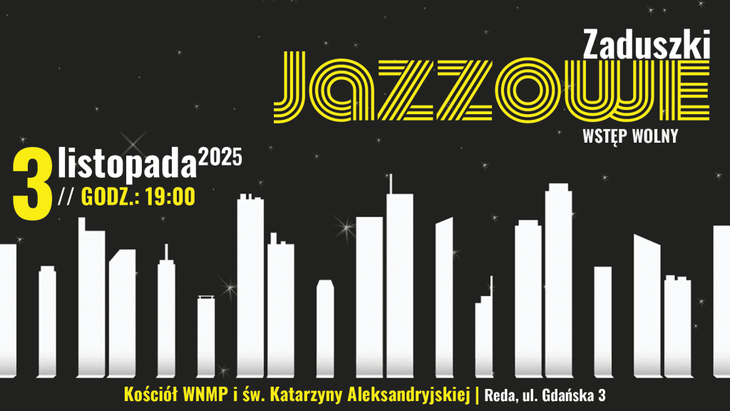 ✨Zaduszki Jazzowe ✨ Już po raz ósmy w kościele WNMP i św. Katarzyny Aleksandryjskiej w Redzie zabrzmi jazz w najlepszym wydaniu. Redzkie Zaduszki Jazzowe są świętem muzyki i pamięci o artystach, którzy odeszli, a ich duch obecny jest w dźwiękach i improwizacjach kolejnych pokoleń. 📅 3 listopada 2025 🕖 godz.