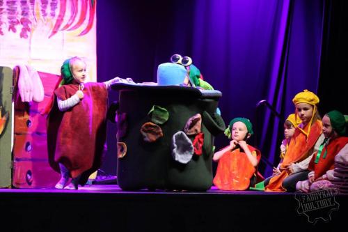 Było dużo śmiechu, piosenek i jesiennych kolorów, a mali widzowie wychodzili z uśmiechami i apetytem na kolejne spotkanie z teatrem! 🎭🍁