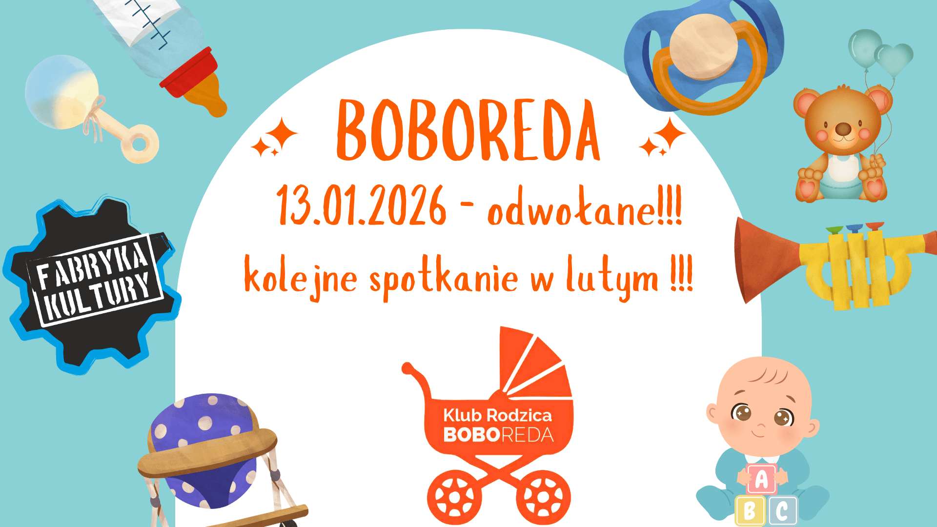 Zapraszamy Was razem z maluszkami do 3 roku życia na bezpłatne spotkania Klubu Boboreda w Fabryce Kultury w Redzie!