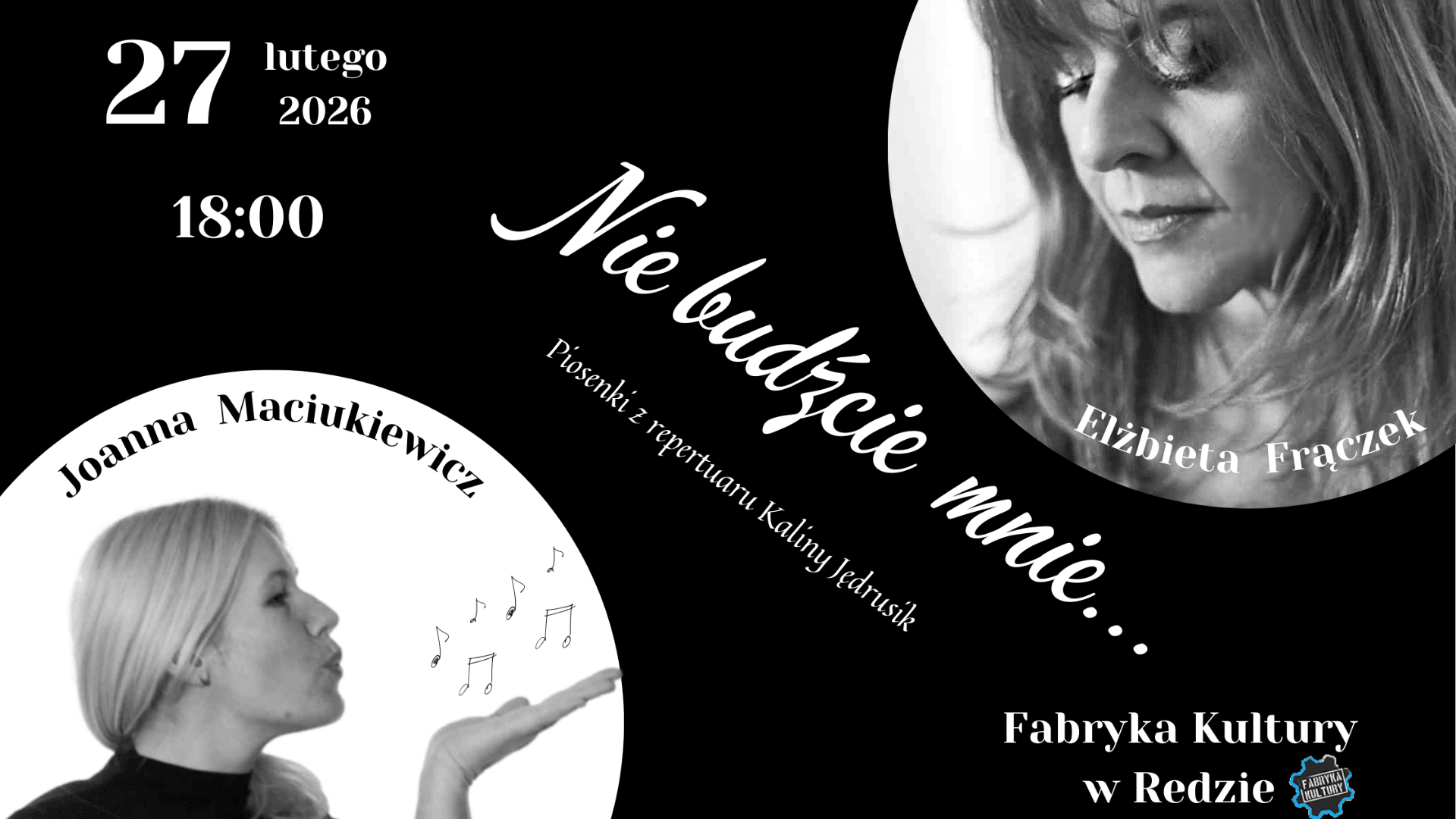 „Nie budźcie mnie…” – to wieczór z piosenkami z repertuaru Kaliny Jędrusik. W przeważającej części to utwory Jeremiego Przybory i Jerzego Wasowskiego, Ta para autorów, od zawsze zajmuje szczególne miejsce w naszych sercach, bo piosenka musi mieć tekst – nieoczywisty, przesycony ironią i metaforami, zawsze aktualny, niesiony przez pięknie płynące melodie. Piosenki żyją póki je śpiewamy. Koncert premierowy odbył się 28 marca 2025 roku, w kinie Rybak w Łebie, z okazji okrągłych urodzin wokalistki, a kolejny miał miejsce podczas tegorocznych Dni łebskiej kultury. Oba spotkały się z dużym uznaniem publiczności. Usłyszą Państwo Do Ciebie szłam, Nie odchodź, Jesienna dziewczyna, Utwierdź mnie, Ciepła wdówka na zimę i wiele innych piosenek.