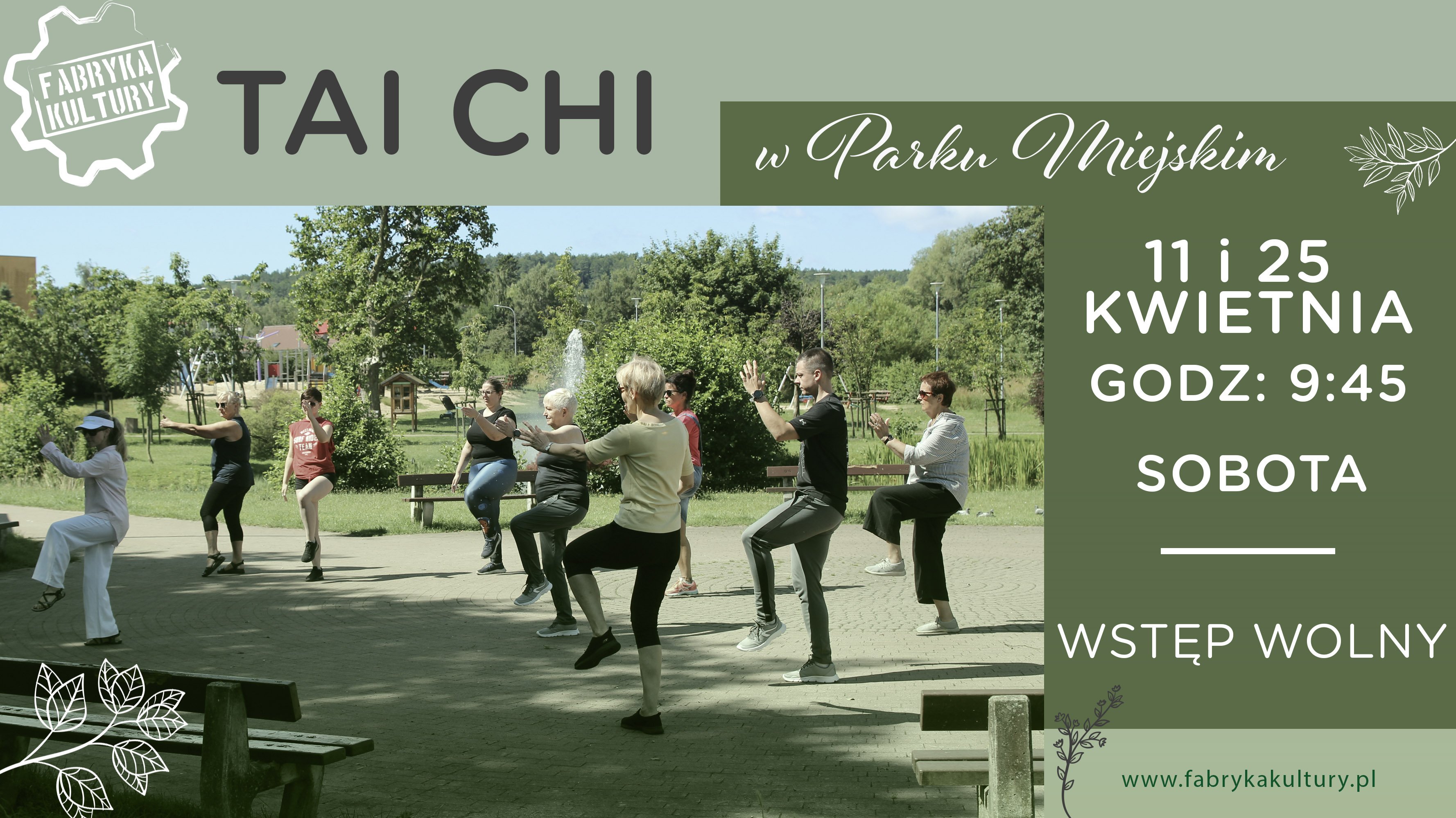 Tai Chi są to zajęcia dla każdego, można je wykonywać niezależnie od swojego wieku i stanu fizycznego. Są to ćwiczenia, które łączą w sobie spokój, płynność i uwagę. Tai Chi ćwiczą ludzie na całym świecie, jest to forma ruchu, która nie obciąża naszych stawów, wzmacnia mięśnie, poprawia koordynację oraz uczy świadomości naszego ciała. Jest to wspaniały sposób na ruch, który możesz wykonywać na łonie natury jak i w zaciszu swojego mieszkania.