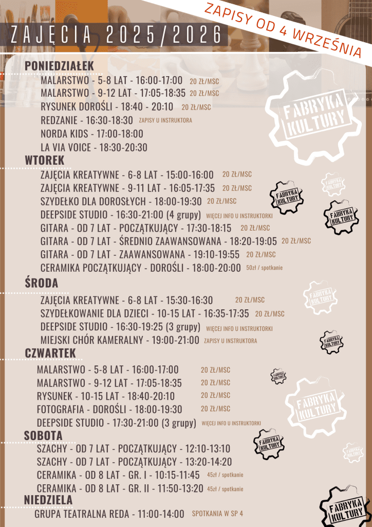 ZAPRASZAMY NA CYKLICZNE ZAJĘCIA Z FABRYKĄ KULTURY!