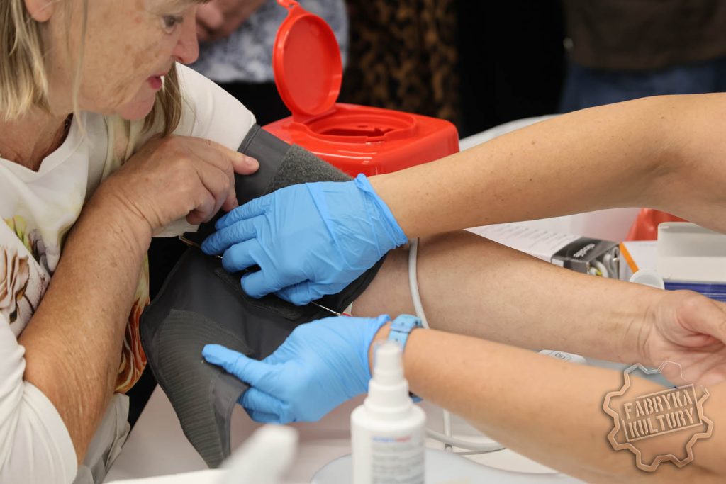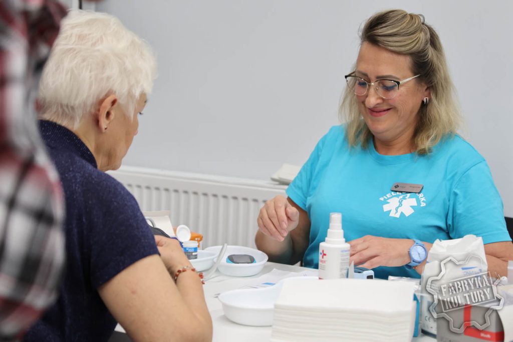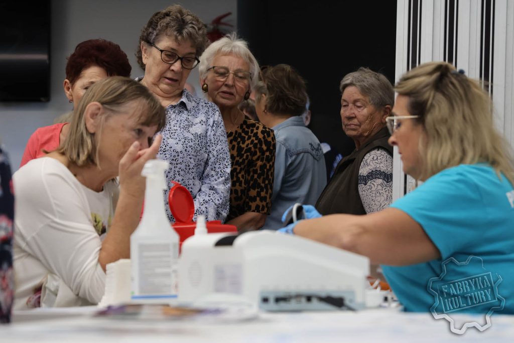 W ramach wydarzenia pielęgniarka Małgorzata Składanek przeprowadzała bezpłatne pomiary ciśnienia, cukru i BMI, wspierając seniorów w trosce o zdrowie.