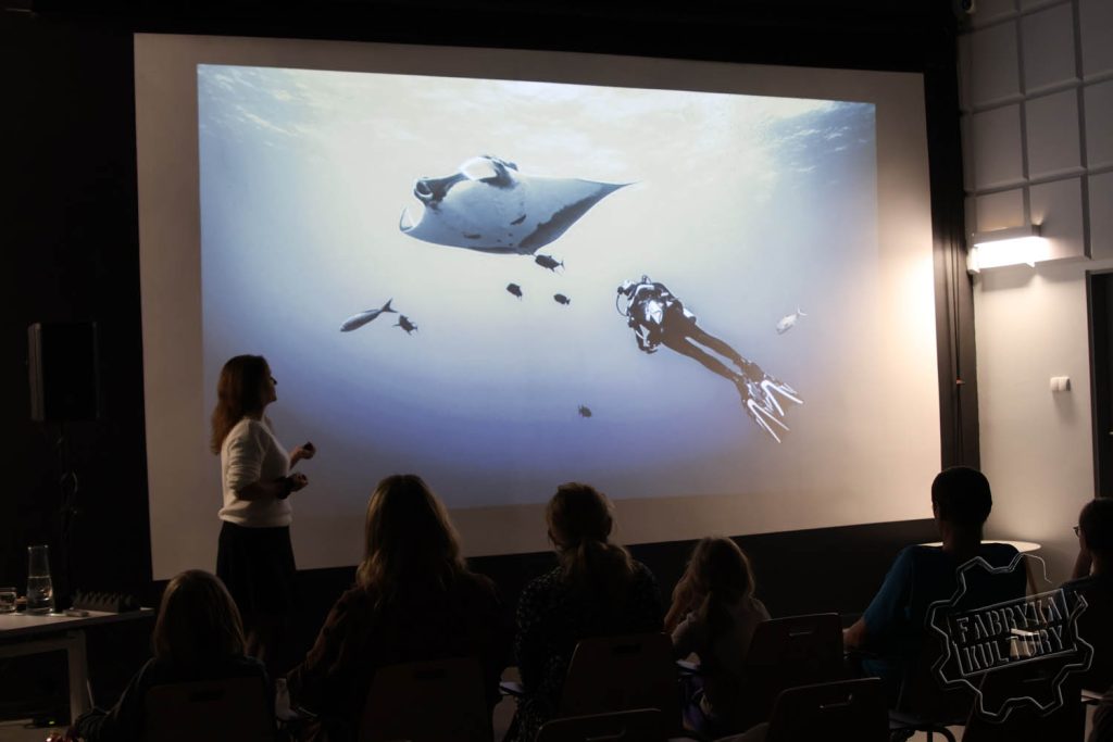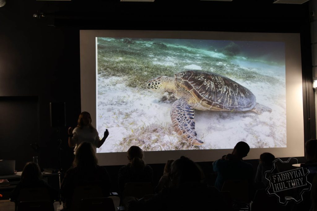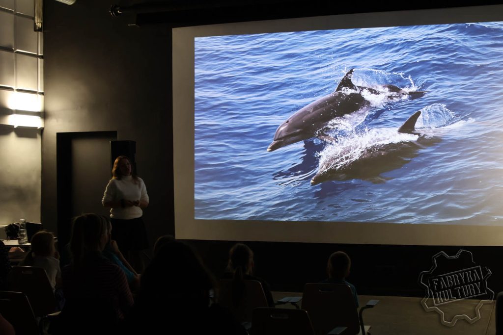 Zaprezentowane z bliska ujęcia wielorybów, mant, delfinów, żółwi, rekinów i wielu innych stworzeń były wprost nieprawdopodobne. Justyna Szumacher z Rekiny Justyny jak nikt inny potrafi oswoić z tematem stworzeń, które tylko z pozoru wyglądają na groźne. Dziękujemy i do zobaczenia wkrótce w Fabryce Kultury w Redzie.
