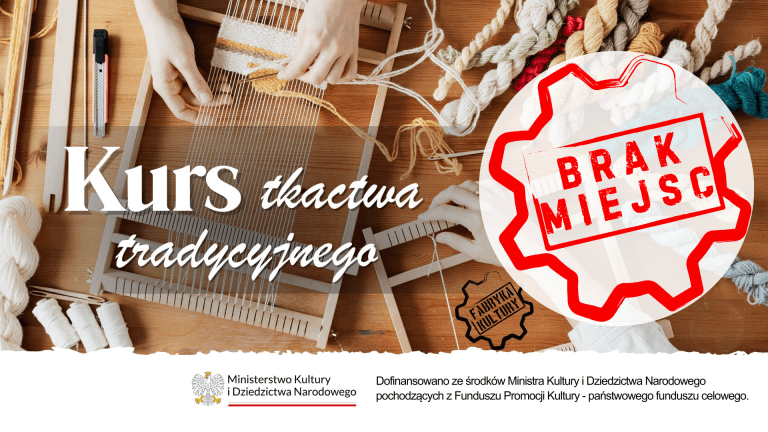 *** BRAK WOLNYCH MIEJSC *** Zapraszamy do udziału w wyjątkowym, siedmiomiesięcznym kursie tkactwa tradycyjnego prowadzonym przez mistrza tradycji. Celem projektu pt. „Tkactwo – ocalić od zapomnienia” jest przekazanie ginących umiejętności…