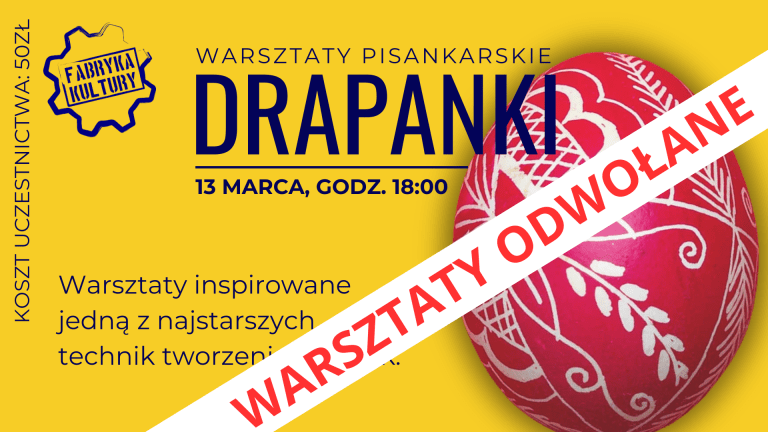 13 marca 2026 | 18:00 | 50zł/osoba | Fabryka Kultury w Redzie ** WARSZTATY ODWOŁANE** Zachęcamy do uczestnictwa w warsztatach tradycyjnego zdobienia jaj wielkanocnych. Uczestnicy precyzyjnie wydrapią ażurowe wzory na…